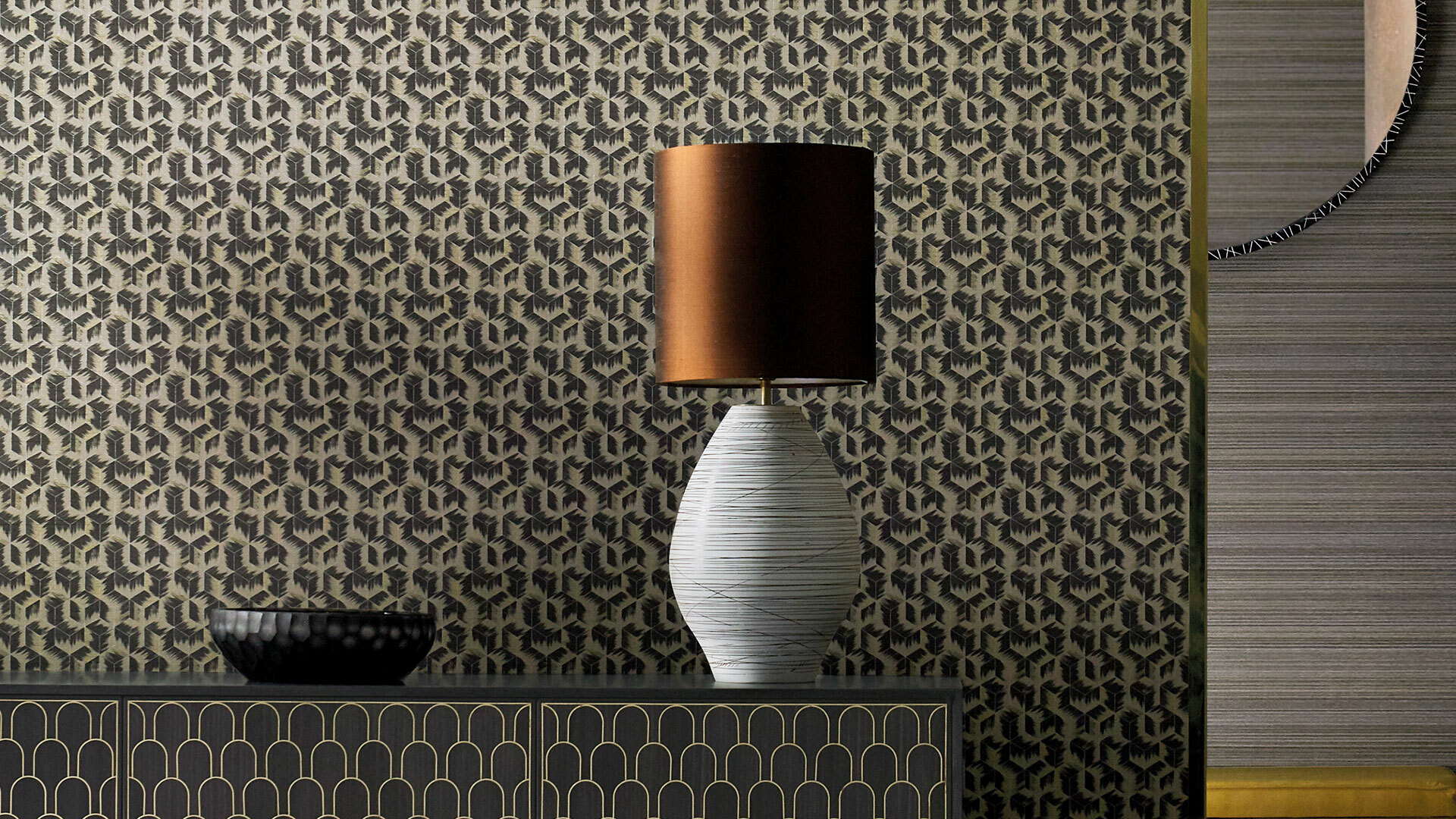 Tumbling blocks is a historical patchwork pattern contemporised with artistic brushstrokes. Fine metallic shaping cubes elevate this Zoffany wallpaper creating the illusion of organic movement and irregularity. Available in three colourways: Empire Grey Stone and Faded Anthracite.