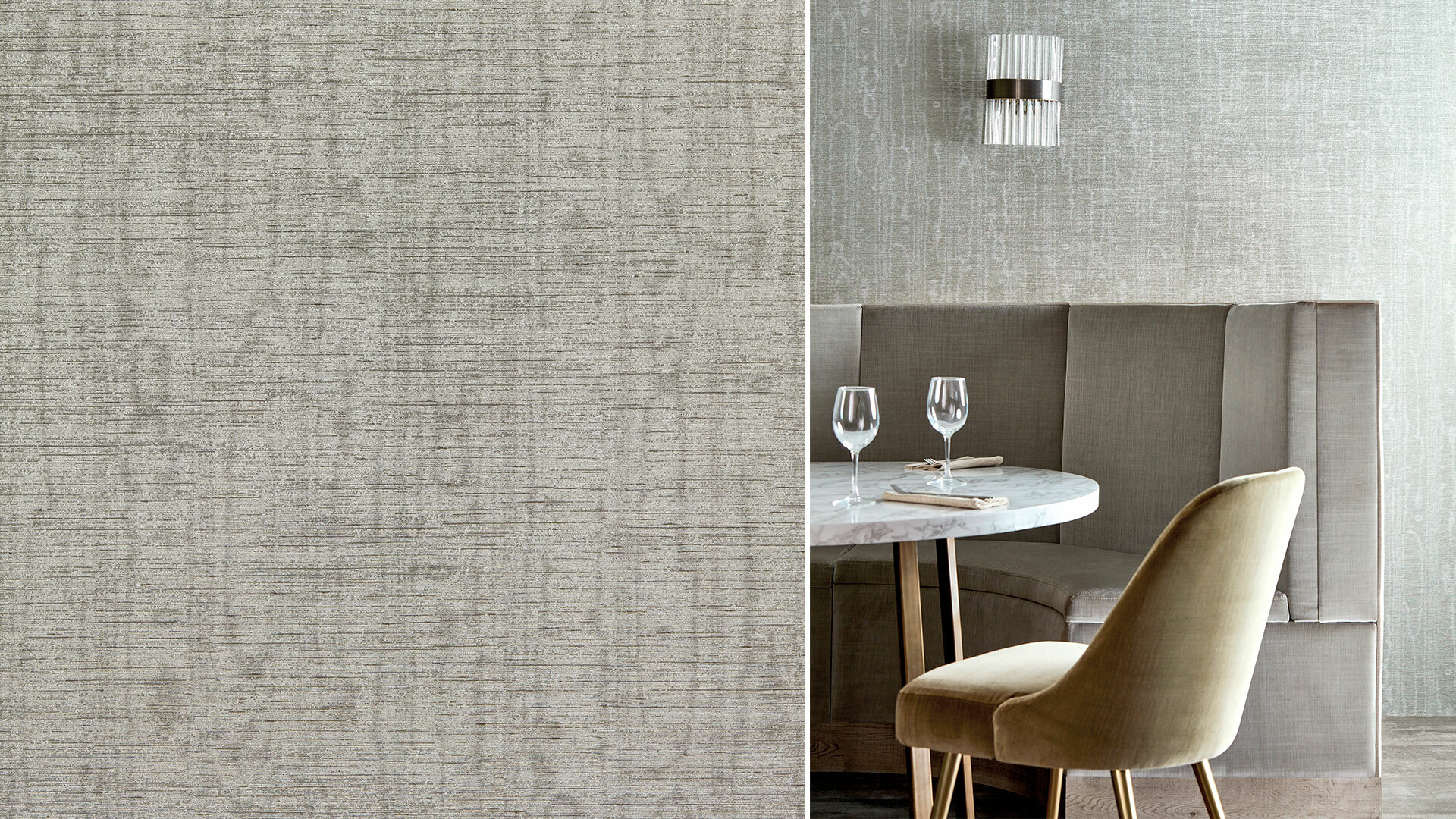 Finely embossed to give the watery appearance of a genuine silk moire this Zoffany archive design has been reimagined in the Alchemy of Colour. A beautiful semi-plain Watered Silks swirling ripple pattern can be used on all four walls for the ultimate in sophistication. Available in six colourways: Bone Black Stone Silver Antique Bronze Dove and Platinum Grey.